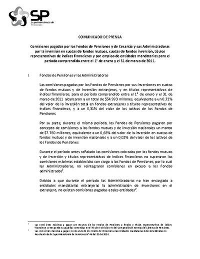Comisiones pagadas entre el 1° de enero y el 31 de marzo de 2011.