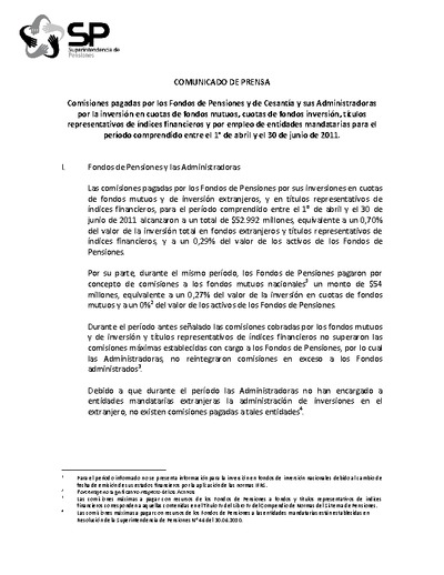 Comisiones pagadas entre el 1° de abril y el 30 de junio de 2011