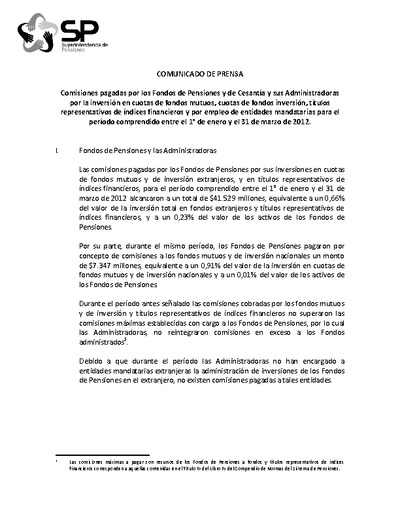 Comisiones pagadas entre el 1° de enero y el 31 de marzo de 2012
