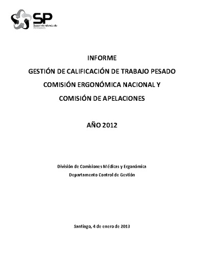 CEN, comisión ergonómica, puestos de trabajo calificados, 2012, informe de gestión