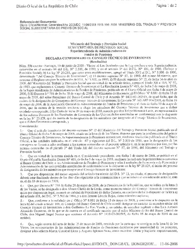 Resolución N°556, 2008, Consejo Técnico de Inversiones, CTI, sistema de pensiones