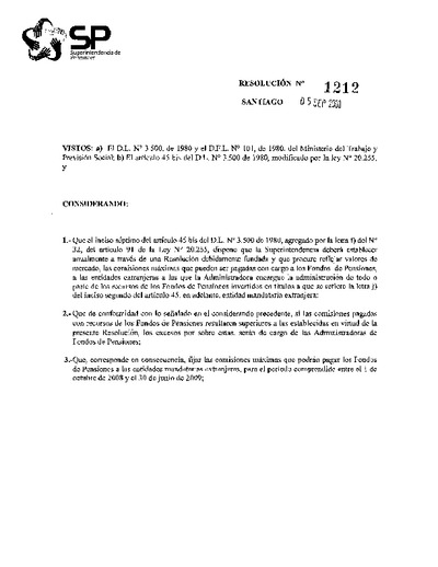 Resolución N°1212, 2008, Comisiones máximas, Fondos de Pensiones, extranjeras