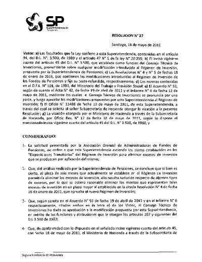 Resolución N° 27, 2011, Modifica, Régimen de Inversión