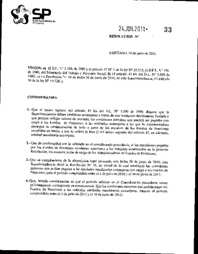 Resolución N° 33, del 24 de junio de 2011