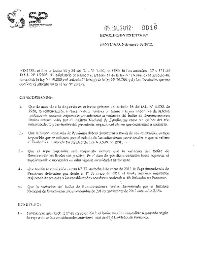 Resolución N° 16, 2012, Tope imponible, cotizaciones obligatorias, AFP, salud, ley de accidentes del trabajo